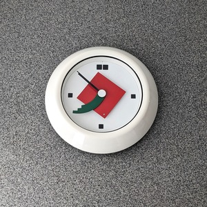 赤い正方形、黒にビビッドカラーの小さな図形_掛け時計
